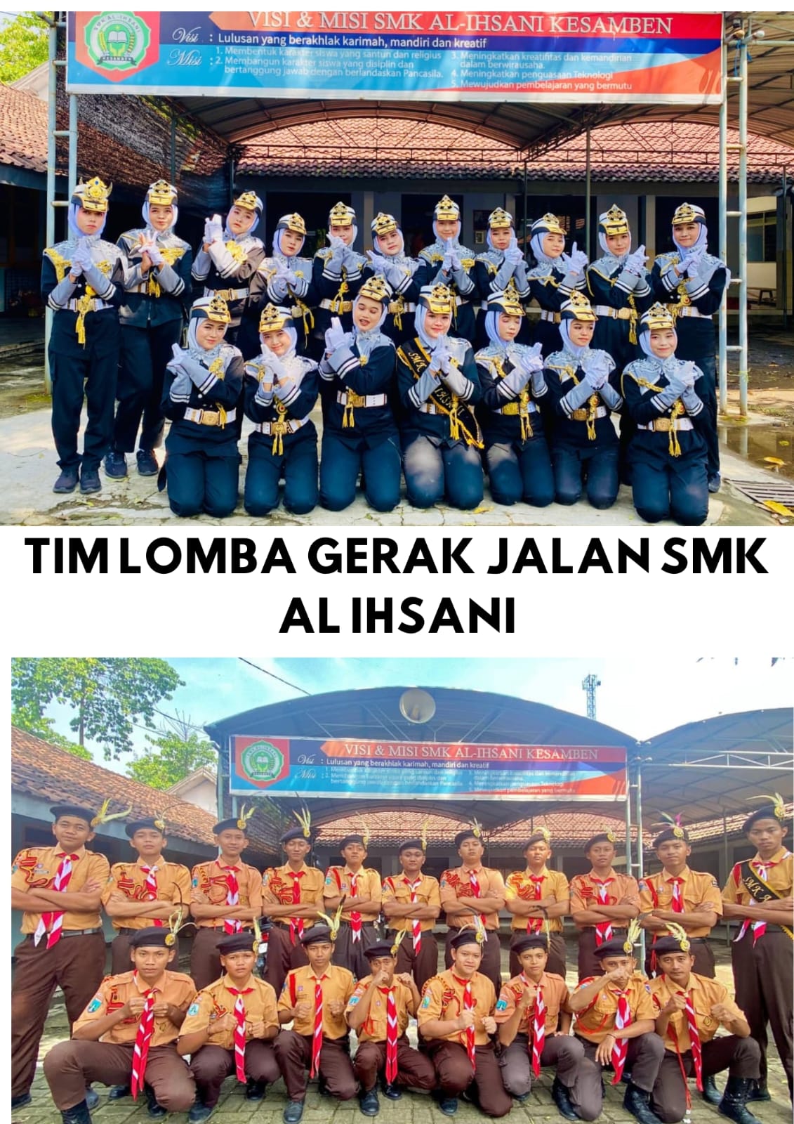 Semarak Bulan Agustus adalah momen Kemerdekaan yang dinanti oleh Masyarakat Indonesia. SMK AL IHSANI juga memmeriahkan hari kemerdekaan kali ini dengan mengikuti lomba-lomba di tingkat kecamatan Kesamben.Tahun ini Lomba gerak jalan SMK AL IHSANI meraih juara 2 untuk regu putra dan juara 3 untuk regu putri.tentunya lomba gerak jalan ini menjadi momen SMK AL IHSANI untuk lebih dikenal oleh masyarakat sekitar,terutama di wilayah kecamatan Kesamben.